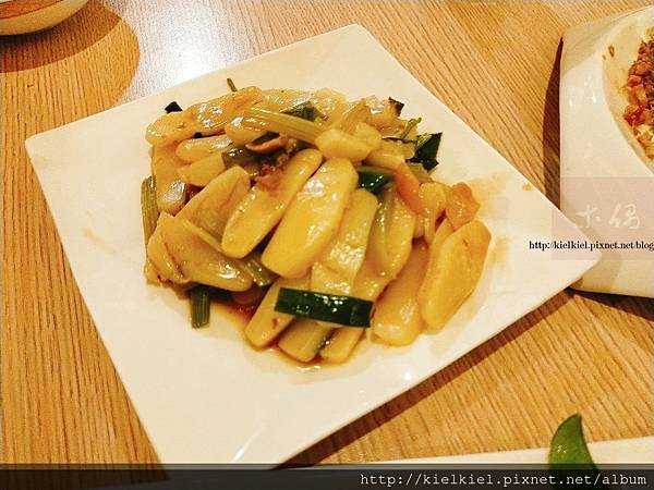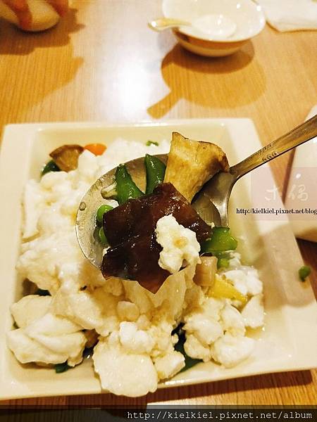 又是一道上菜後充滿困惑的菜哈,乍看只見一片雪白,撥雲見日後才得見到底下的蔬菜。